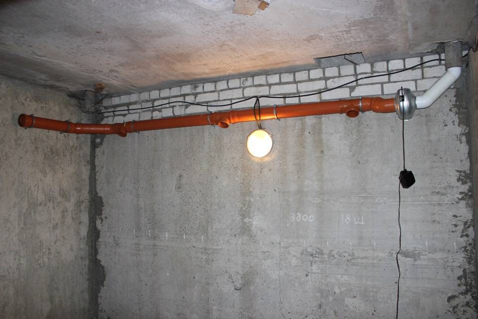 - Монтаж сети в погребе под жилыми помещениями имеет особенности. Труба вытяжки встраивается в зону прохода общедомовой шахты или канала. Этот канал обязательно должен выходить на улицу.