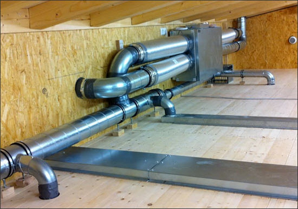 На потолке создается сеть воздуховодов, по которым принудительно движется воздух. Сердцем системы является громоздкая металлическая коробка с мощным вентилятором внутри. Он способен перегонять сотни кубометров воздуха за час, обеспечивая приток свежего воздуха каждому уголку квартиры. Недостатками варианта являются: