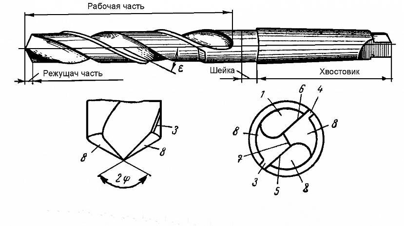 Спиральное сверло: его части и элементыИсточник studfile.net