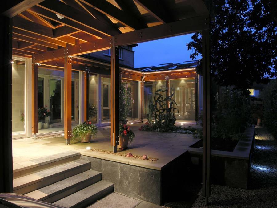 Для строительства веранды или открытой террасы не потребуется подводить коммуникации. Достаточно будет прочного фундамента с гидроизоляцией, чтобы сырость не проникала в помещение.