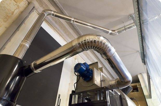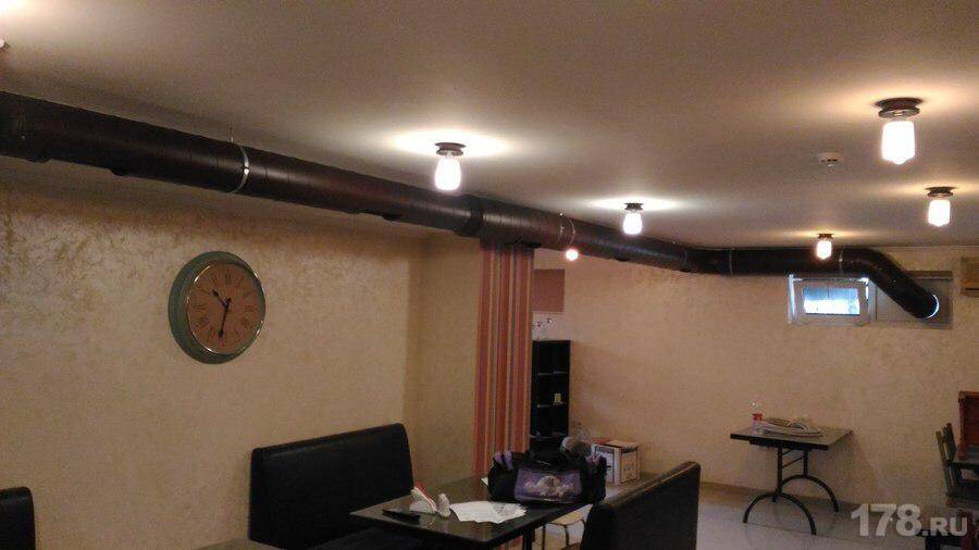 Особое внимание отводится вытяжке в заведениях, находящихся на цокольных и первых этажах. Надзорные органы требуют выведение вентиляционных труб выше конька кровли, т.е