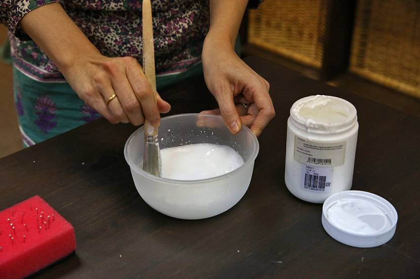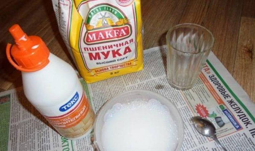 - Другой способ, когда клей и воду смешивают в пропорции один к одному,