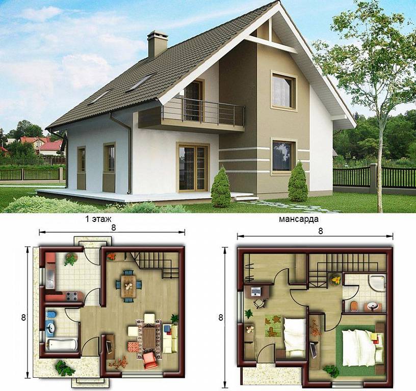 Дом с мансардой 8х8: приемы рациональной планировки