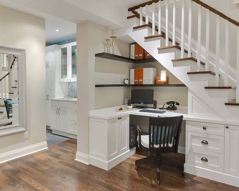 Хозяйственные отсеки и места для хранения вещей, заготовок проектировщики рекомендуют расположить под лестничными пролетами и в угловых частях холлов, прихожих. Места универсальны, позволяют экономить пространство и обеспечивают простой доступ к вещам.