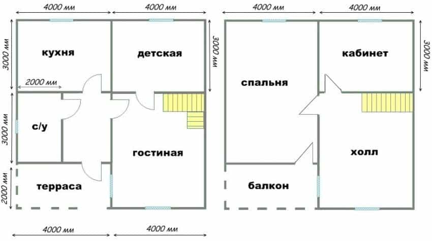 Двухэтажные дома 8х8 проекты из бруса и пеноблоков