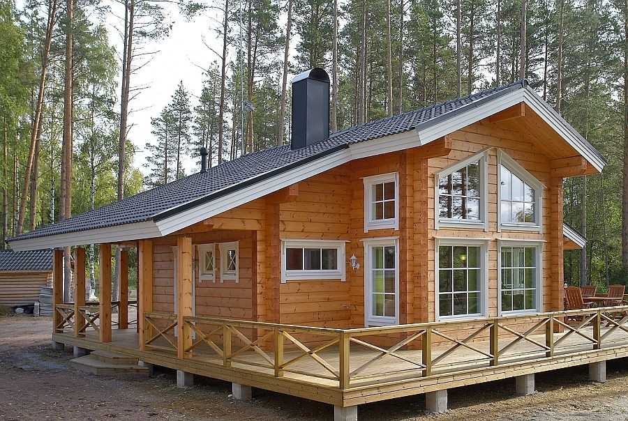Владельцы небольших дачных участков размещают подобные дома, не загромождая прилегающую территорию: остаётся свободное пространство для обустройства зоны отдыха, размещения хозяйственных построек.