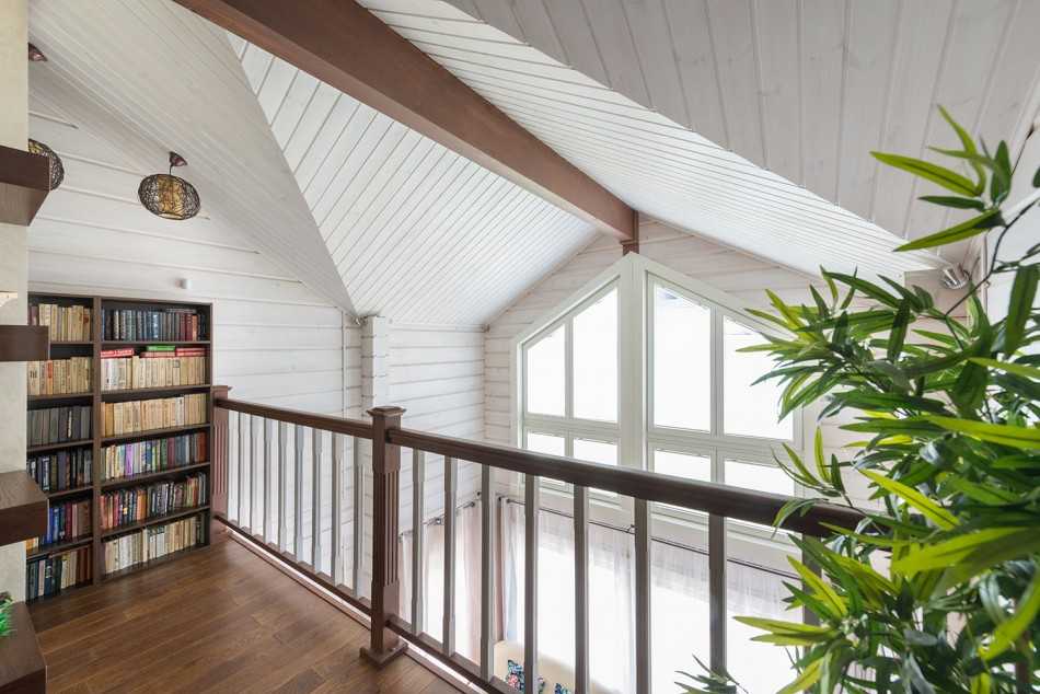 При создании полноценного второго этажа, на нём можно разместить что угодно как спальные комнаты, так и рабочий кабинет или библиотеку.