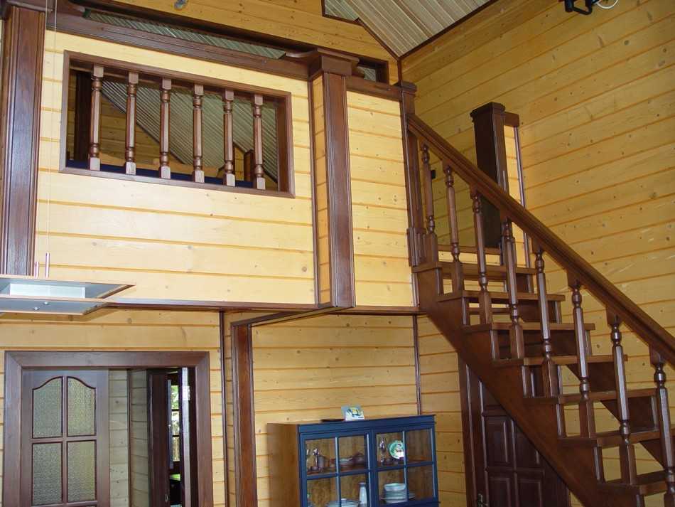 - Для дачных домиков подойдет отделка из натуральных материалов, таких как дерево и камень. Можно обшить все стены вагонкой, имитацией бруса или блок-хаусом. Помимо того, что такой вариант будет смотреться естественно, он еще будет очень экологичным. Если же ваш дом бревенчатый, то стены можно ничем не отделывать, а покрыть бревна специальными составами. К такому интерьеру можно добавить камин в гостиной, и уют вашему жилью обеспечен.