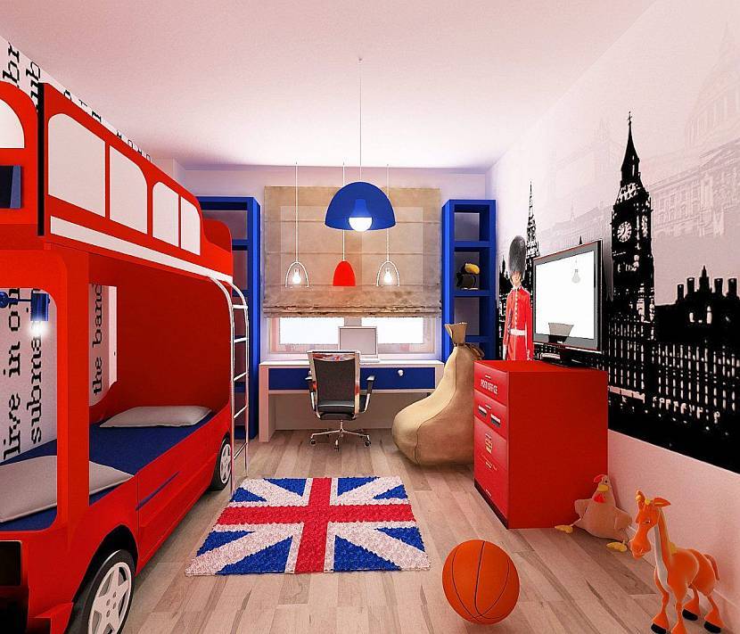 Яркая детская в цветах британского флагаИсточник www.pinterest.com