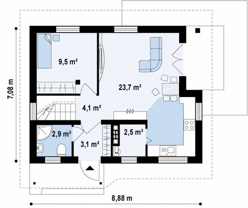 Типовой проект 7х9 из газобетона в современном стилеИсточник uk.aviarydecor.com