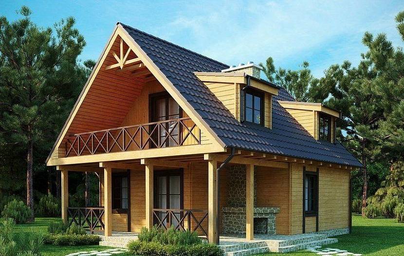 Затейливый декор, мансардные окна и просторная терраса в доме скромных размеровИсточник stroy-podskazka.ru