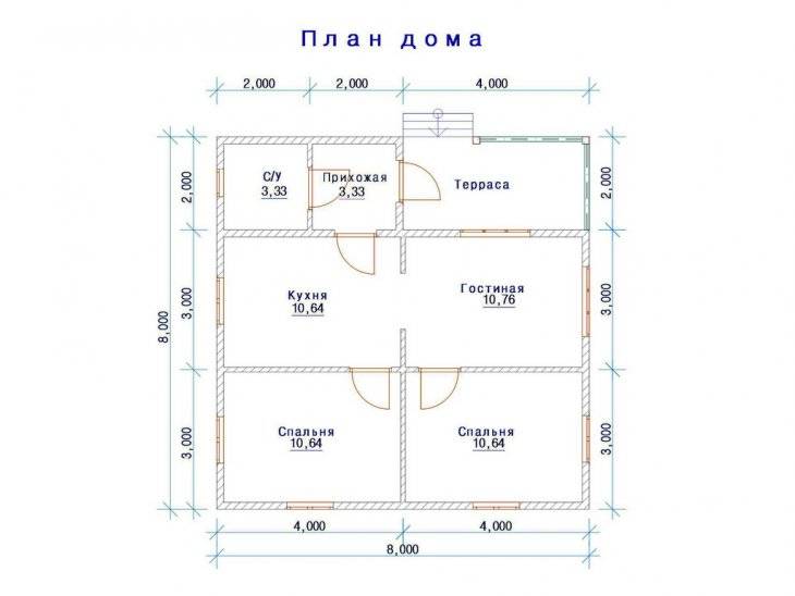 Не нужно усиливать фундамент, как в двухэтажных строениях. Комнаты располагаются в удобной близости друг к другу. Из-за отсутствия межэтажной лестницы жилая площадь организована более рационально. Инженерные системы проще в проектировании и монтаже. Разработка проекта и строительство занимают меньше времени, чем в случае двух-, трехуровневых конструкций. | При большой площади постройки стоимость возведения может превысить бюджет 2-этажного проекта за счет затрат на кровлю, фундамент, инженерные коммуникации. При планировании помещений часть комнат может стать проходными, это скажется на комфорте проживания. |