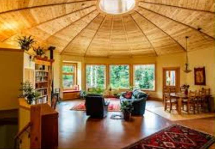 Интересным и практичным является внутреннее обустройство круглого дома. Проект может показаться снаружи не слишком привлекательным, но внутри он потрясающий, а также очень практичный и бюджетный. Если вы цените большое пространство, полукруглые комнаты и вместительную гостиную, то круглый дом-сфера — ваш идеальный выбор.