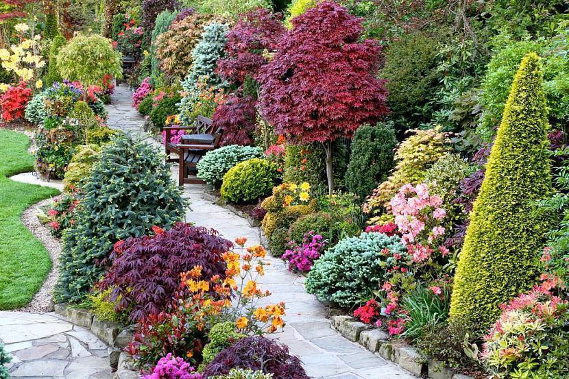 Больше всего хлопот доставляют деревья: они растут и постоянно меняют пространство. При посадке необходимо учитывать не только размер взрослого растения, но и форму его кроны, которая может быть очень разной: раскидистой, пирамидальной, овальной.