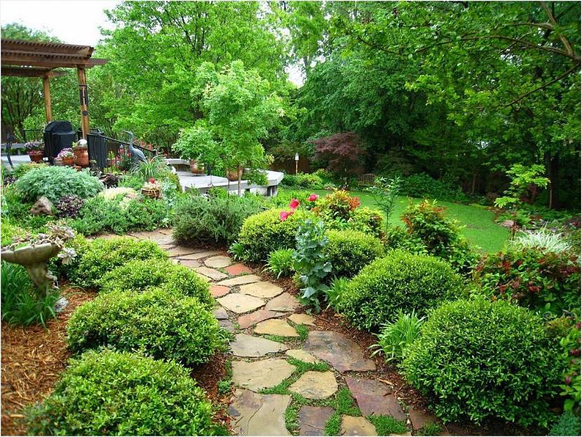 При планировании тропинок, нужно располагать их таким образом, чтобы не пришлось ходить окольными путями к основным постройкам, а прогулочные тропы были функциональными.
