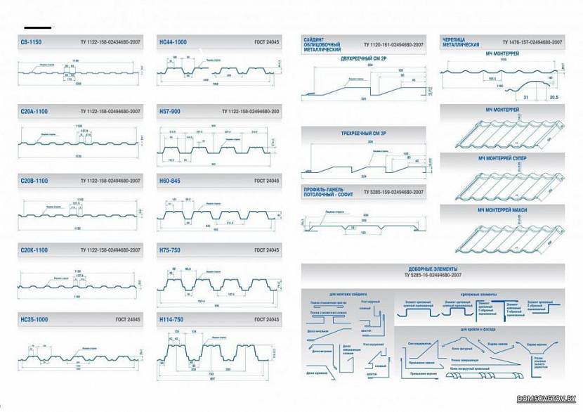 Преимущественно, на рынке встречаются следующие формы профнастила: