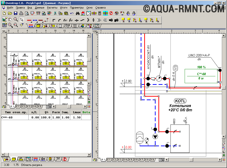 Программа «Oventrop CO» создана для предоставления графической помощи на этапе составления проекта отопления. Она позволяет выполнить гидравлический расчёт и для однотрубной, и для двухтрубной системы. Работать в ней просто и удобно: есть уже готовые блоки, осуществляется контроль над ошибками, огромный каталог материалов