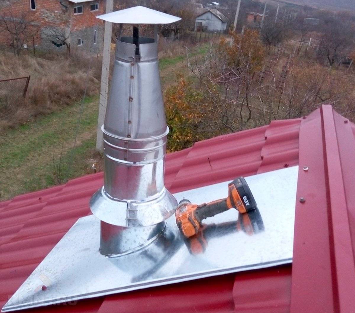 Вывод дымохода через крышу из металлочерепицы