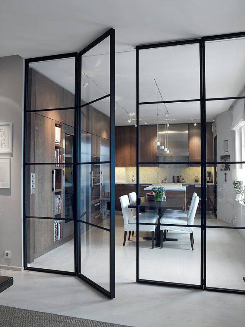 В тренде и витражные межкомнатные двери для хай-тековского дизайна.