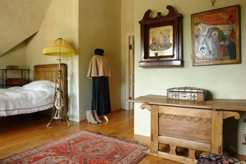 Отделка комнат зачастую простая: плиточный или дощатый пол, покрашенный светлой краской потолок и стены. Иногда стены оклеены обоями в полоску или мелкие цветочки. Расцветку для мебельной обивки старались подобрать схожую с изображениями на обоях.