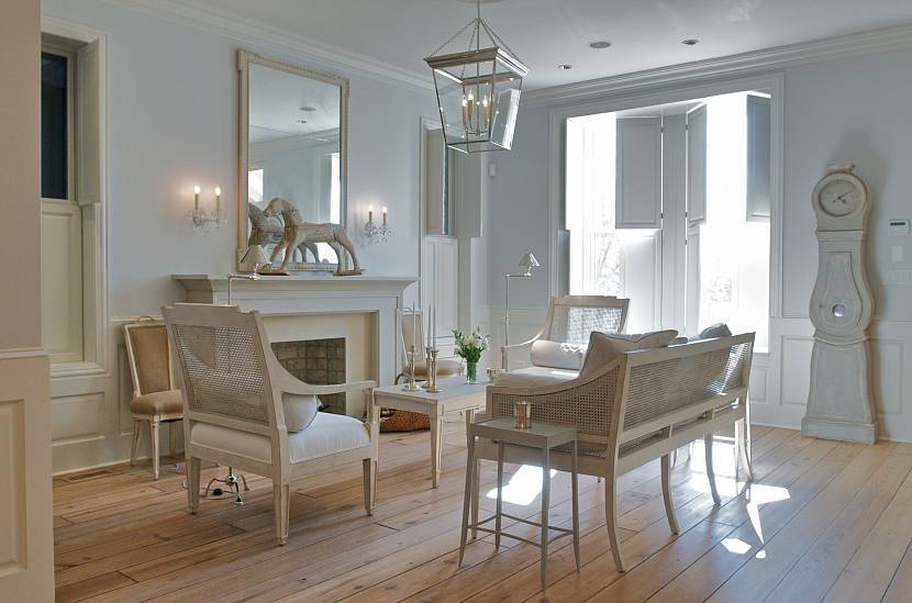 Наличие пустого пространства. Во французских домах не принято заполнять комнаты мебелью так, чтобы она располагалась вплотную, то же касается и предметов искусства на полу или на стенах. Подобный минимализм помогает создавать ощущение легкого, изящного пространства.