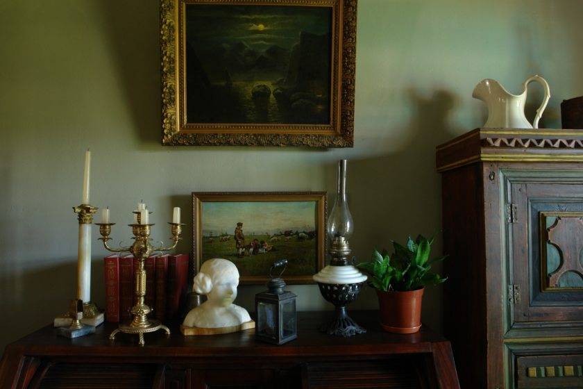 Фарфоровую посуду выставляют на всеобщее обозрение, размещая ее в посудных шкафах и сервантах. На полки этажерок ставят книги, статуэтки, изящные шкатулки. Столики покрывают скатертями с вышивкой ручной работы, ажурными салфетками, на них ставят вазы с живыми цветами, настольные лампы.