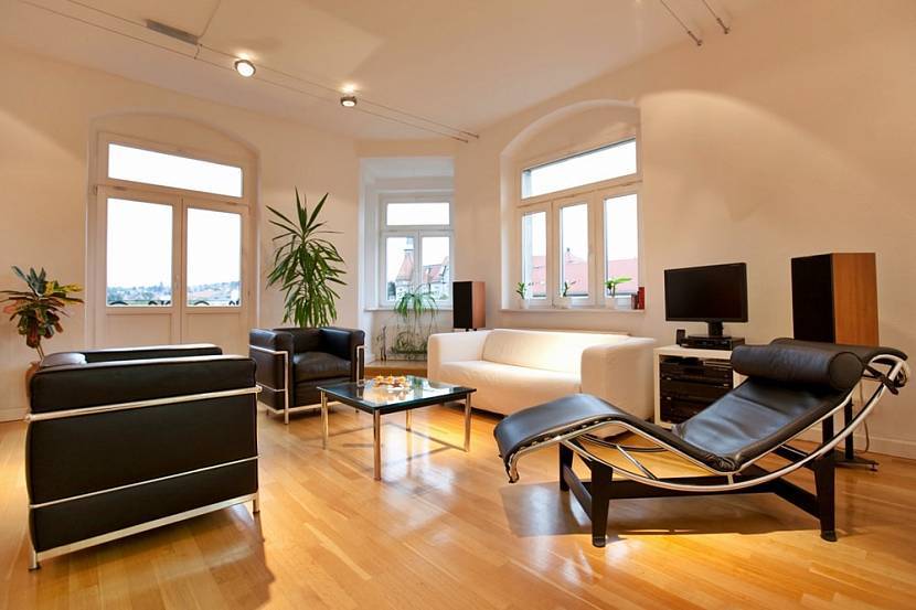 Вот уж к чему у рассматриваемого стиля минимум требований, так это к оформлению потолка. Практичные немцы и австрийцы хотели от потолка только одного – чтобы он не портил общего впечатления от помещения, то есть оставлял его все таким же светлым и просторным. Реализовать это довольно просто – нужно лишь выровнять потолок и сделать его белым.