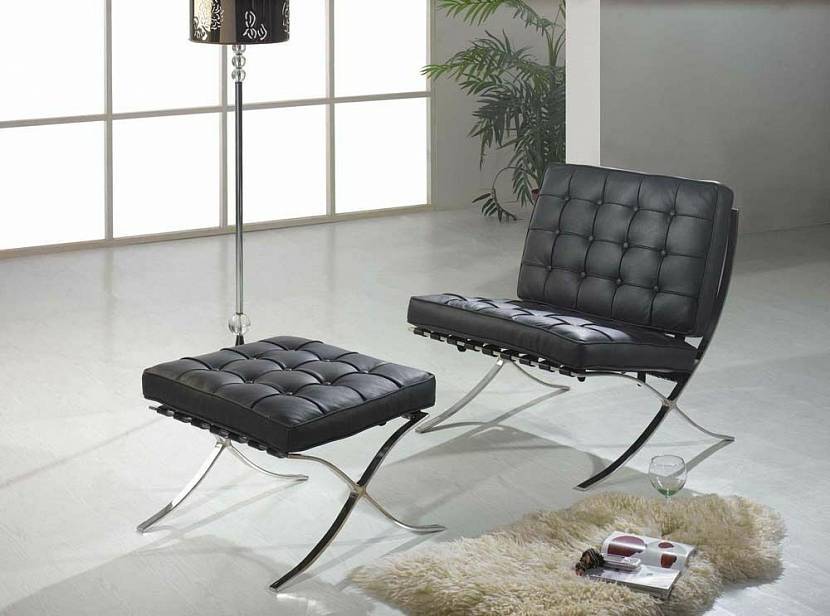 Мебель на металлическом каркасе — это визитная карточка немецкого стиля. Возникнув столетие назад, хромированная мебель сохранила актуальность и по сей день. Металлический каркас делает предмет визуально легче, что особенно ценно в небольшой комнате. Лаконичные стулья и кресла будут украшать гостиную бесконечно долго; доказательством служит эталон стиля — культовое кресло Barcelona без подлокотников.