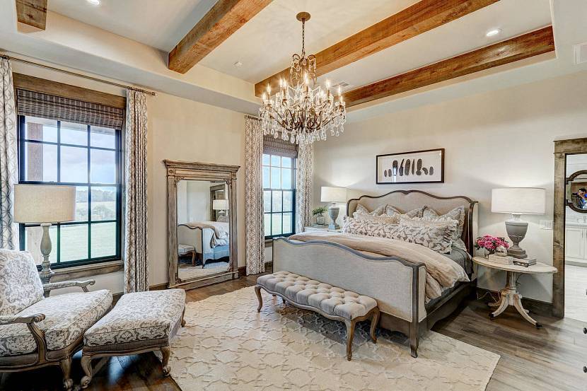 При помощи текстиля создается уют домашнего очага. Главным атрибутом является ковер, и к нему есть несколько требований. Прежде всего, он должен быть с длинным ворсом, очень мягким и небольшого размера. Его укладывают в середину, он не должен застилать весь пол, а только центр комнаты, остальной пол должен быть открытым. Бархатные или муслиновые шторы с кисточками – это главный момент в оформлении окон. Именно они создают романтизм и некую сентиментальность в обстановке. Для декорирования комнат также применяют скатерти и различные салфетки, покрывала. В спальне над кроватью размещают балдахин.
