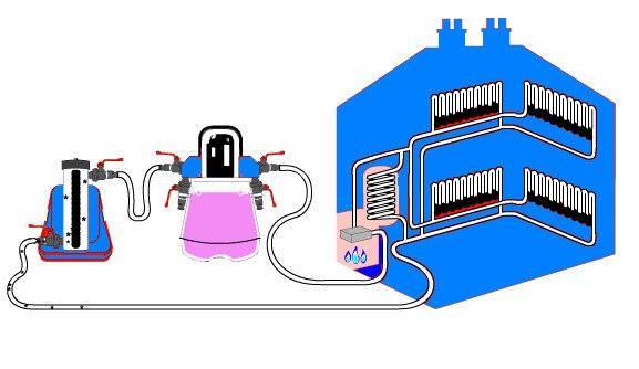 Гидрохимическая промывка выполняется в течение нескольких дней, при этом отопительная система работает в штатном режиме.