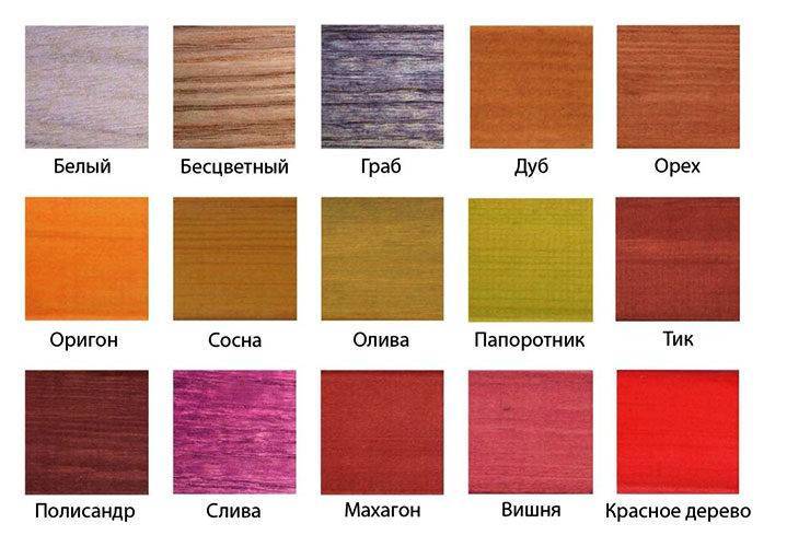 Морилки могут быть бесцветными и с оттенком; лаки – также цветными и с разной степенью матовости. А краски для дерева поражают своим разнообразием: они различаются не только цветом, но и степенью укрывистости, и текстурой.