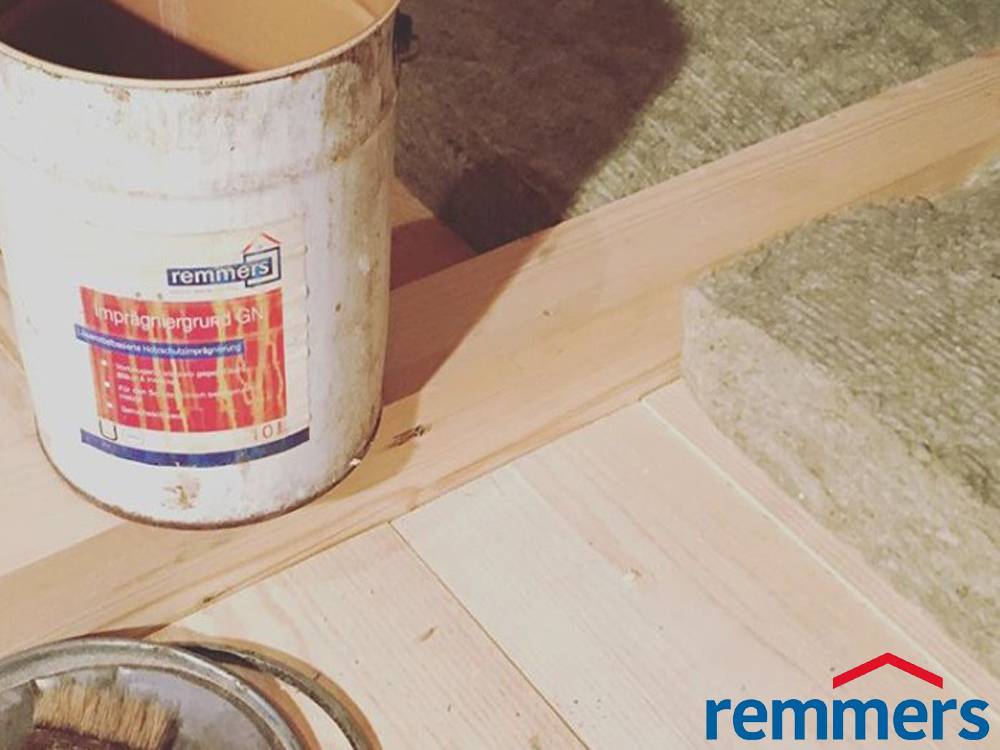 В условиях повышенной влажности стоит присмотреться к водной версии этого средства – RemmersAquaIG-15-ImprägniergrundIT. Кроме того, что пропитка борется со всеми распространенными биопоражениями и имеет еще более низкий расход – 100 мл/м², она придает древесине стойкость к набуханию при повышенной влажности. В целом, Remmers не сторонники обязательной обработки биоцидами внутри помещений, но есть места, где без защиты просто не обойтись, например подвалы, чердаки. В этих случаях нанесение последующего финишного покрытия обязательно.