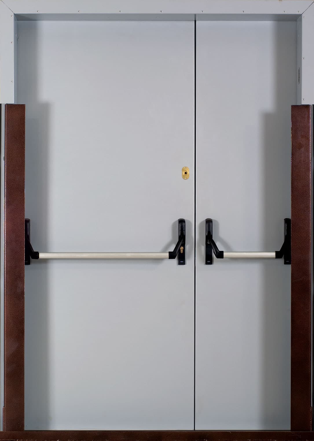 Противопожарная двупольная дверь с остеклением и антипаникой
