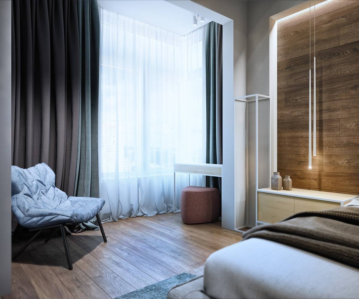 - Если зонированные площади выдержаны в разных стилях, занавески должны сочетаться с общей обстановкой зоны отдыха.