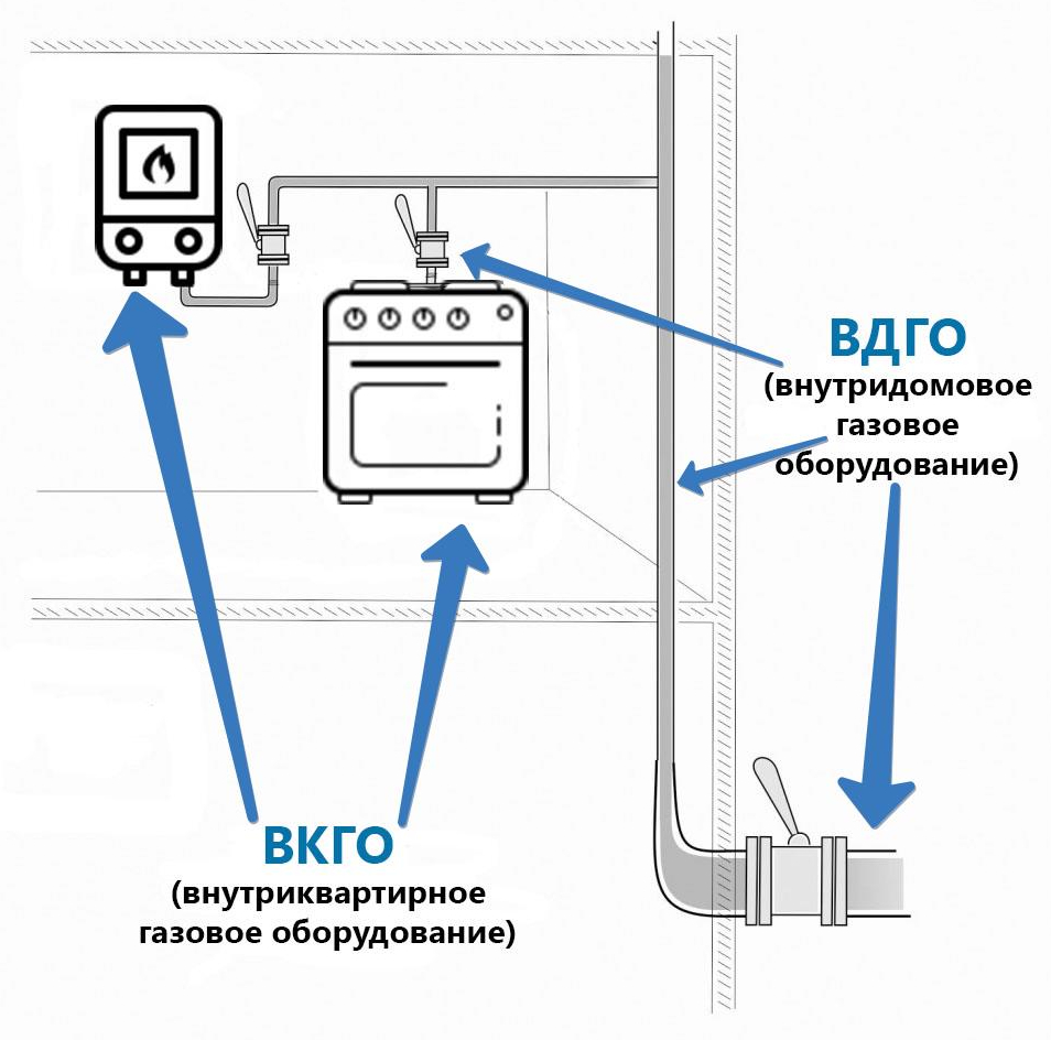 Также владелец жилых и нежилых помещений несет ответственность за безопасность эксплуатации от первого вентиля в помещении до всего бытового оборудования, потребляющего голубое топливо: газколонки, газплиты, печи, котлоагрегаты и коммерческий прибор учета потребленного газа (сокращенно – ВКГО).