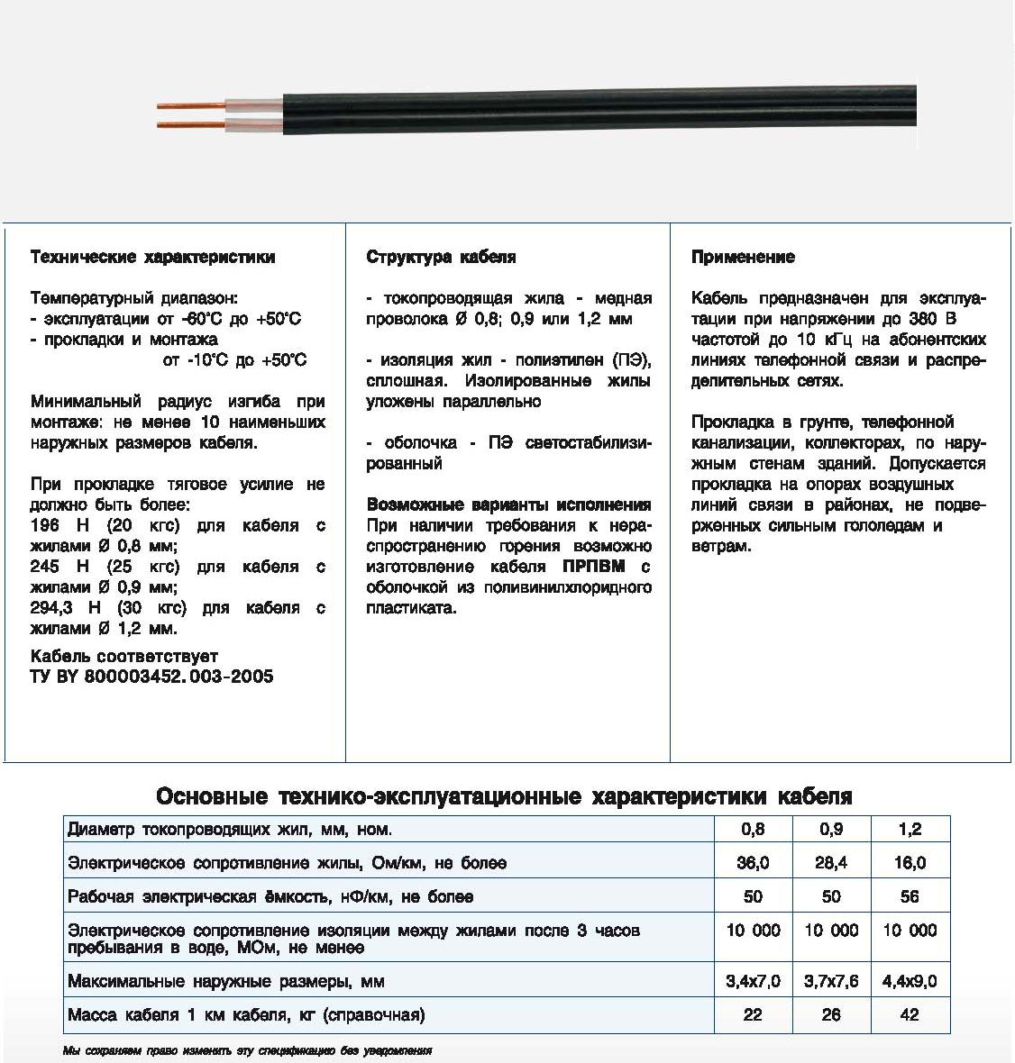 Качественная изоляция должна обеспечивать сопротивление 5 мОм на километровый участок при температуре воздуха 20 °С. Механические свойства обеспечивают: