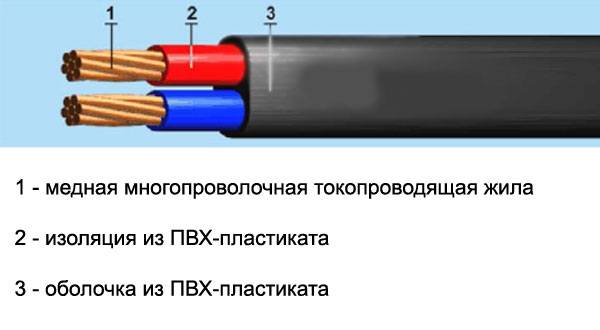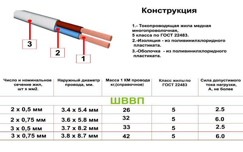 - Сечение жил ШВВП варьируется от 0 х 3,5 до 2,5 квадратных миллиметра;