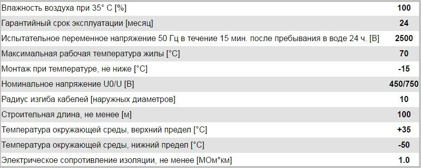 При этом важно отметить, что монтаж провода можно осуществлять только в пределах температур -15⁰С — +35⁰С. Так же достаточно актуальным параметром является не горючесть кабеля