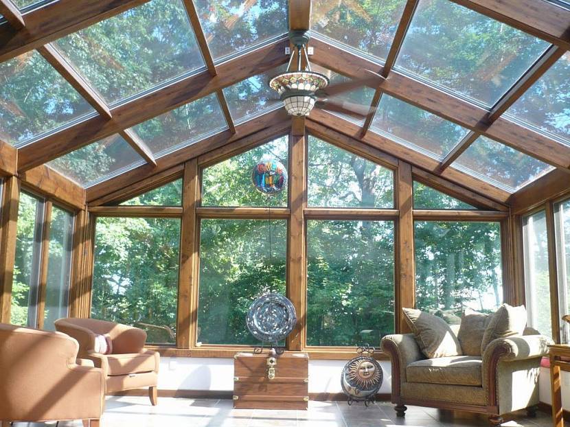 Здесь нет привычного для обычной кровли своеобразного «пирога», создающего на фундамент несущие конструкции определенную нагрузку, а только каркас и светопроницаемый материал, который позволяет потоку солнечного цвета проникать в помещение.