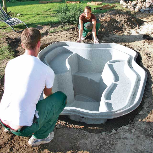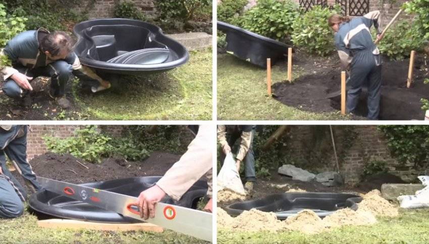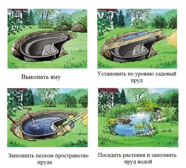 Установка пластикового пруда на даче