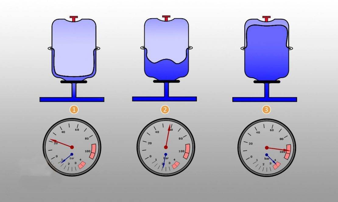 Встречаются случаи возникновения проблем с расширительными баками. Здесь образуется разрыв либо ниппель может пропускать воздух. Внутренняя сторона бака состоит из двух отделений, разделённых мембраной. В одном отделении находится воздух, а другое заполнено теплоносителем. При нагреве жидкой рабочей среды происходит её расширение, и она с большей силой давит на мембрану. Мембрана, в свою очередь, влияет на сжатие смеси газов.