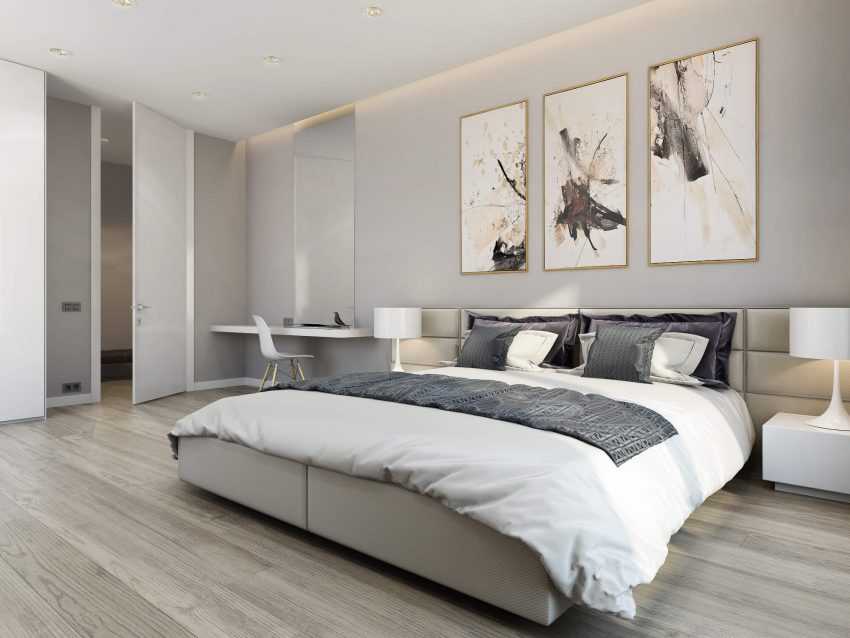 В идеале спальня должна иметь возможность разделить комнату на функциональные зоны, которые можно разделять, используя различные дизайнерские приемы. Тут должен поместиться платяной шкаф или гардеробная, туалетный стол и оставаться свободное место.