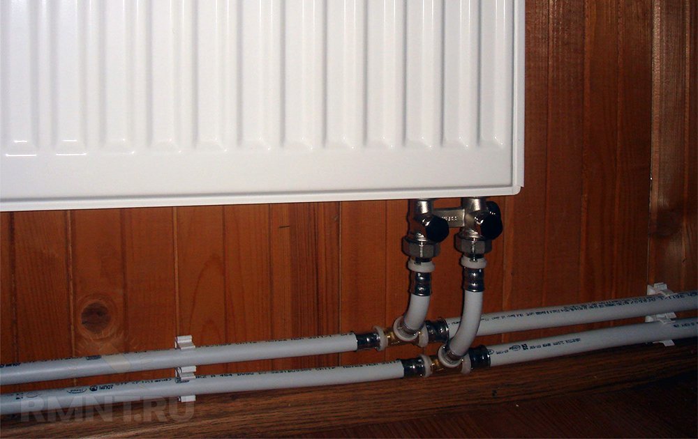 Точно определите, какая из труб является питательной, а какая дает обратную связь. С батарей разобраться проще, они имеют маркировку на торцах обозначающую узел подключения.