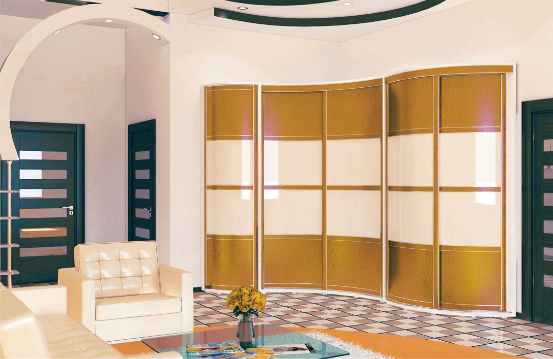 Как и другие виды шкафов с раздвижными дверями, радиальные конструкции могут быть: