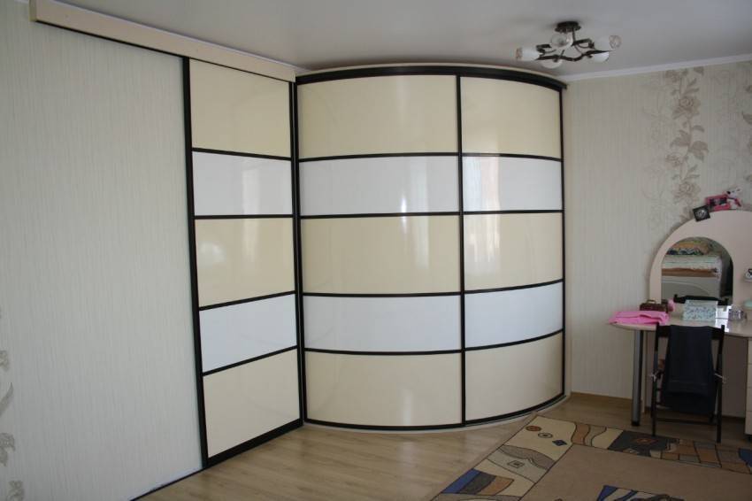Радиусные шкафы купе для спальни: фото шкафов радиусного типа