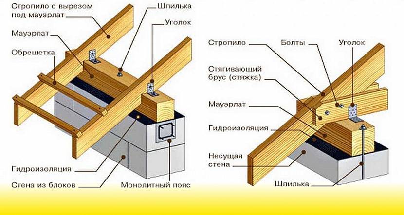 — Для изготовления стропил выбирается высококачественный, хорошо просушенный пиломатериал, не имеющий трещин и крупных сучков, особенно в областях их соединения с другими деталями. Стропила делают из толстых досок или бруса.