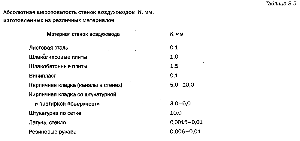 учета шероховатости стенок (табл. 8.6).