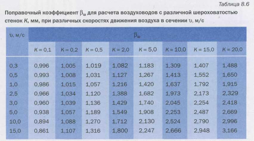 расчете воздуховодов с шероховатостью