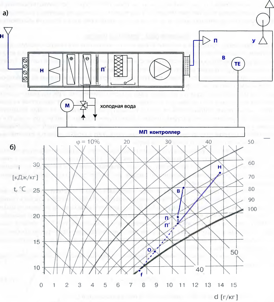 - Подготовленная воздушная масса увлажняется или осушается до заданных параметров.