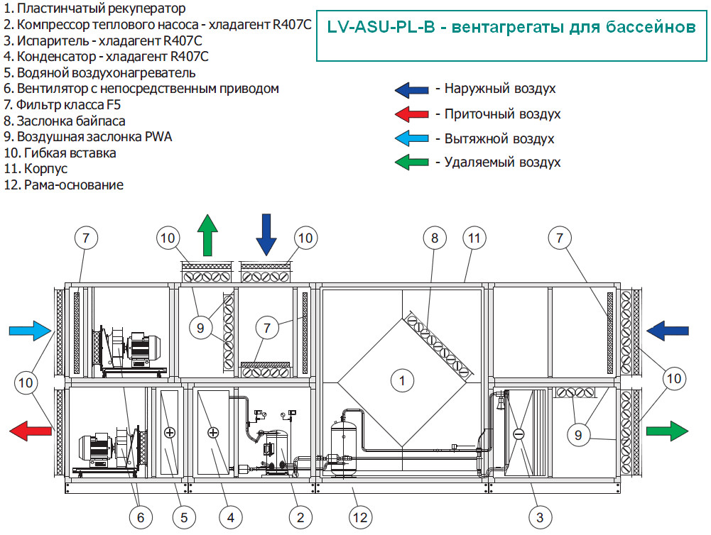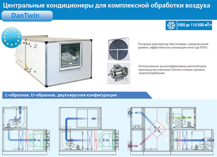 - Центральный кондиционер с рециркуляцией смешивает в различных пропорциях приточный и вытяжной воздух. Комбинация сокращает расход электроэнергии на обработку уличного воздуха.